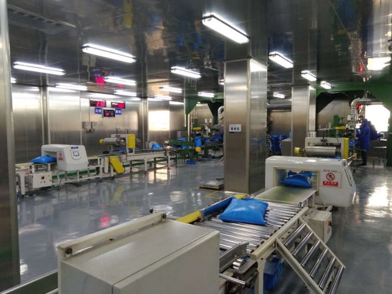 The bag transportation system helps to send bags, boxes, or drums to palletizer system, many conveyors and even bag detection system will be included in this part, such as belt conveyor, curved conveyor, bag flattener, metal detector, checkweigher, bag rejector, square roller conveyor, pick-up conveyor, etc.